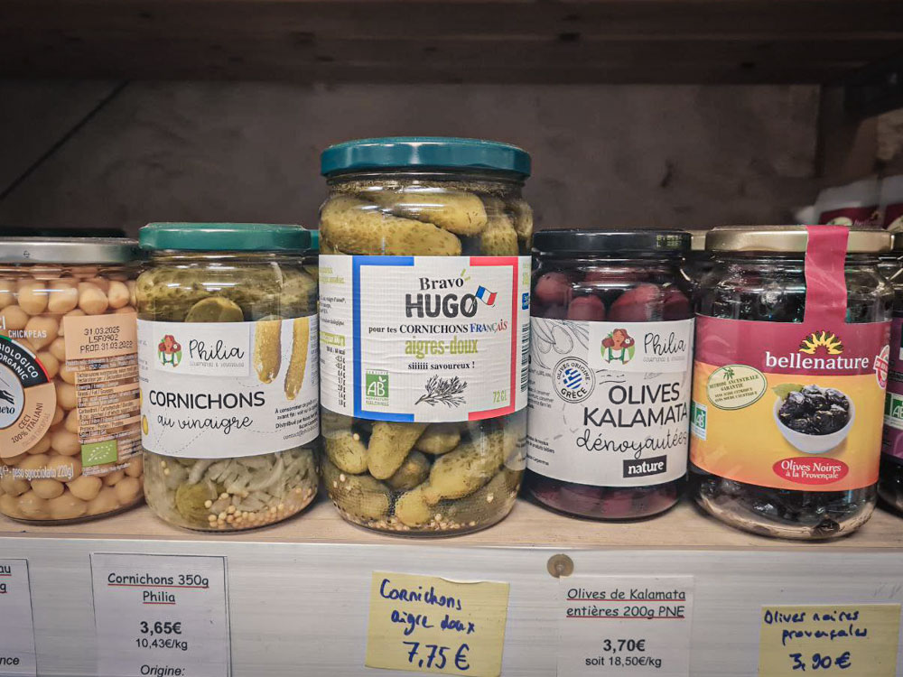 Chocolats, café, thé, tisanes, épices, confitures, miel, conserves, compotes, huile et olives en vrac