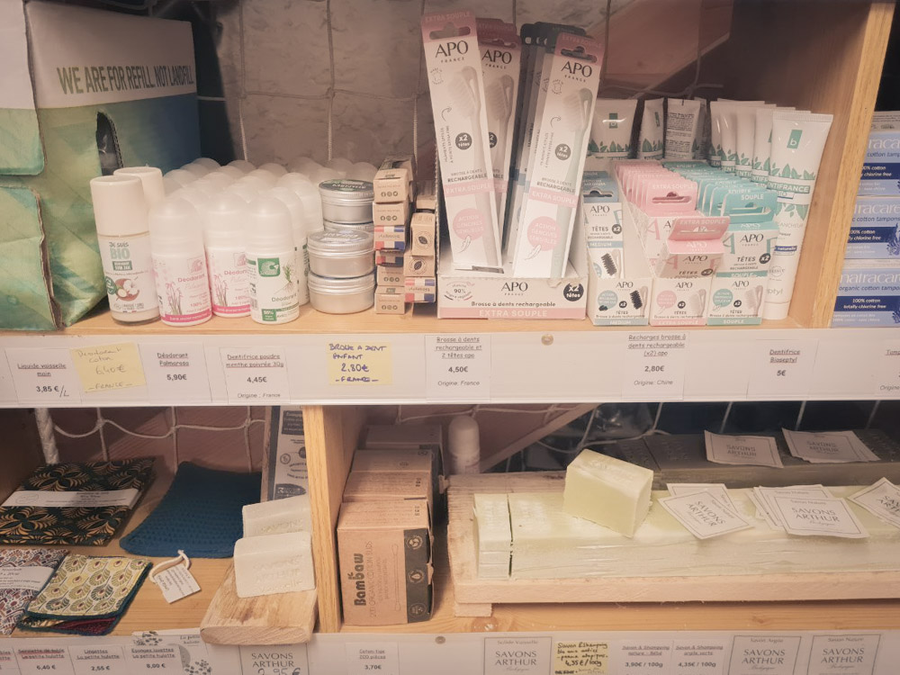 Savons, shampoings, crêmes, baumes, huiles essentielles, eaux florales, brosses à dent, bijoux…