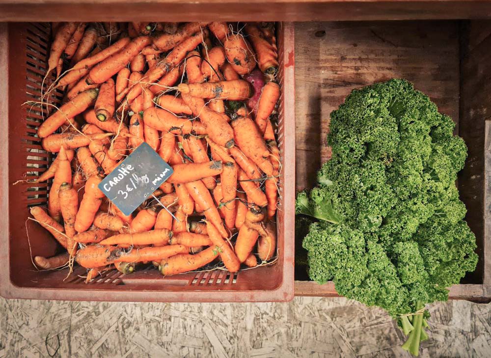 Fruits et légumes de saisons, fromages, produits laitiers et au soja, pain…